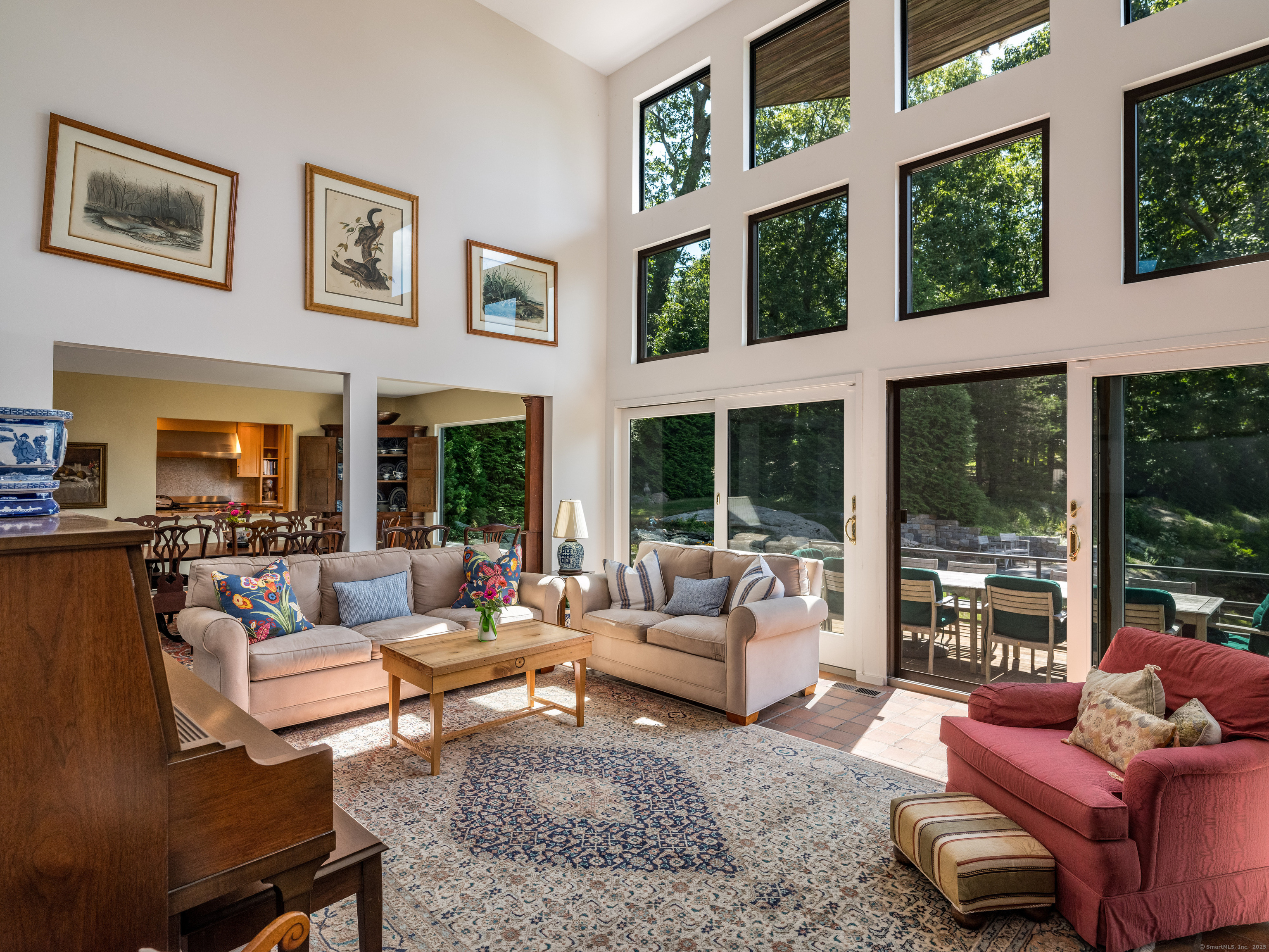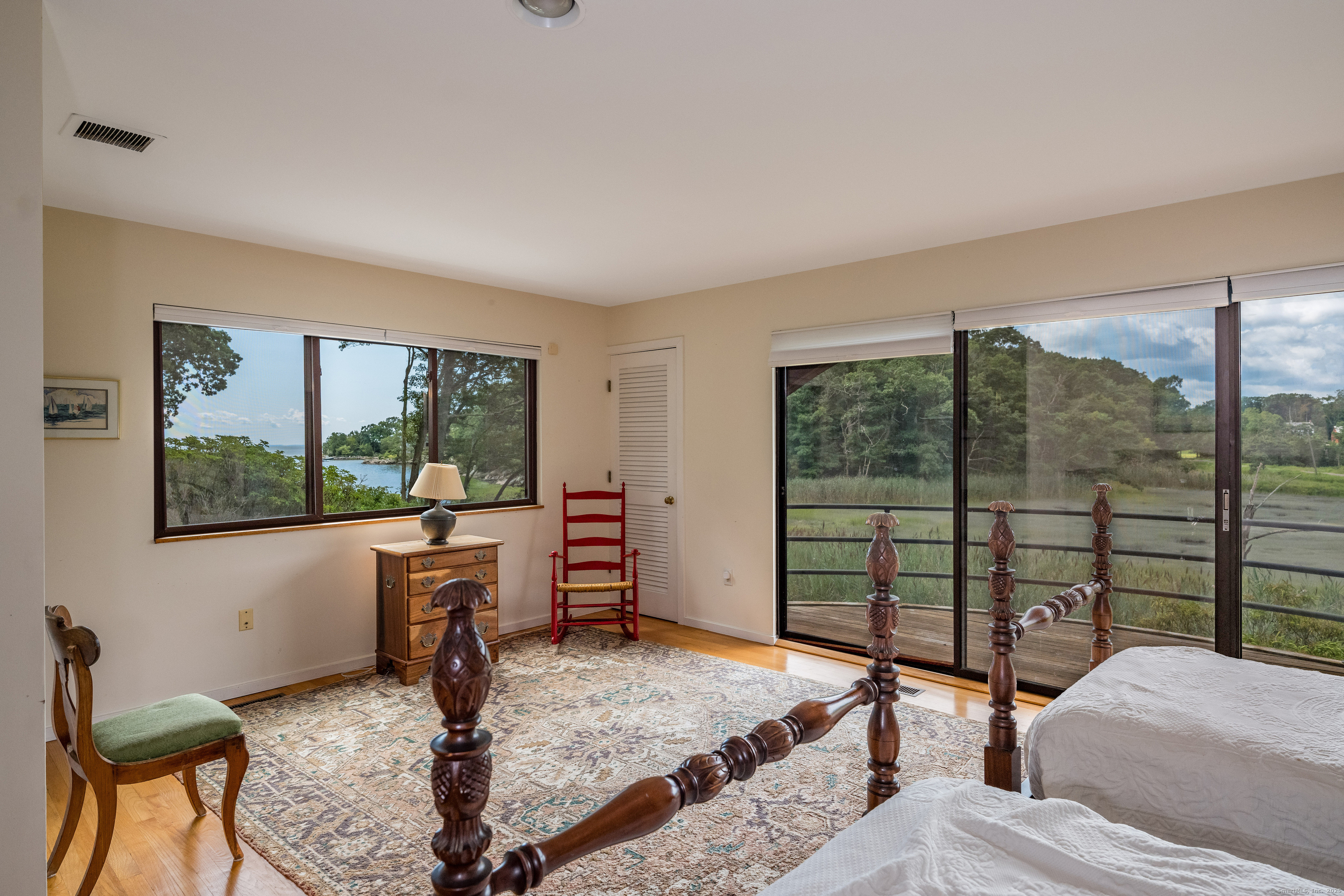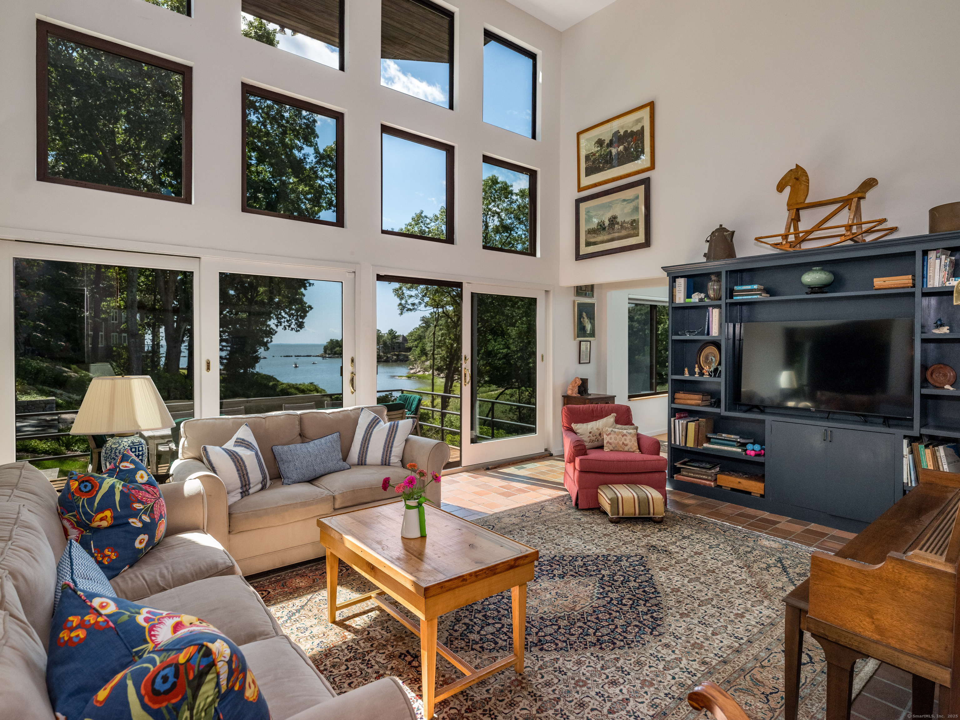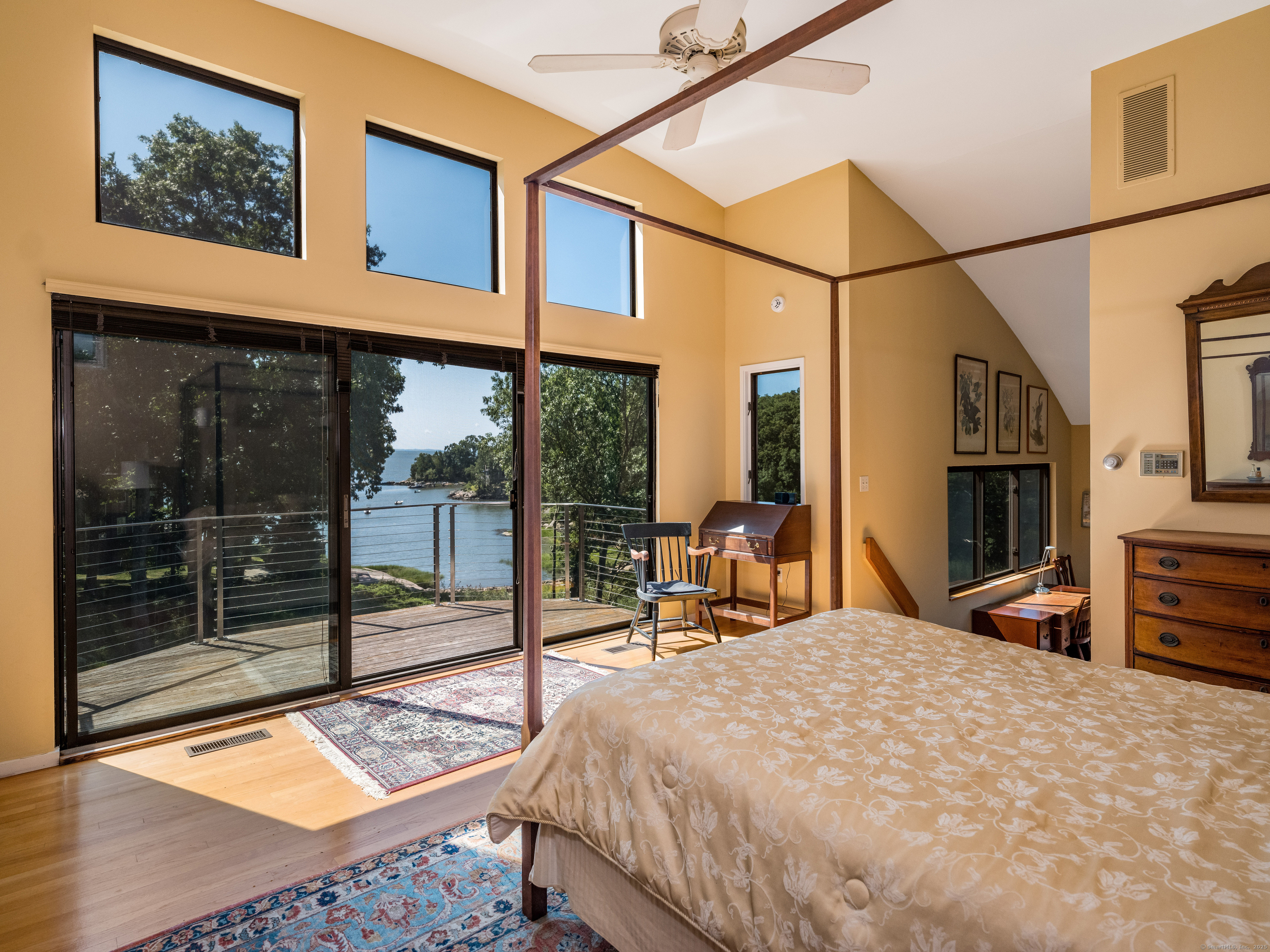 Guilford ~ Old Quarry Area ~ Waterview Contemporary ~ one of the most unique homes on the entire Eastern seaboard. Set on 3.39 Acres. Designed to capture spectacular southerly views over Little Harbor as well as Long Island Sound. With its walls of glass, high ceilings & numerous Transom windows this Unique Designed Home allows for natural views to flow easily through nearly every living area. The Main Level Features Dramatic Entertaining area including a spacious Renovated Chefs Kitchen with Wolf & Subzero Appliances, Granite counters & Center Island with Breakfast Bar. A Generous Great Room featuring wood burning FP, Curved 20ft ceiling, Family rm also with 20 ft Ceiling & Sliders to Large Deck, great for entertaining and evening dinners. Two Bedrooms overlooking Pool Area, plus full bath & powder rm complete this Floor. The upper level offers a Spectacular Primary Bedroom Suite w/deck for enjoying morning sunrises and evening sunsets, featuring a domed ceiling. Sitting Area/office w/FP & Sliders to Deck. Two additional bedrooms with Waterview's & bath. The Lower Level Offers a Guest bedroom w/ Wood Burning FP w/Sliders to Deck, Entertainment room leading to the pool area. Additional features include access to Little Harbor, Koi Pond, whole house generator, 2 car detached garage & circular driveway. Enjoy some of the best Boating, Kayaking & Hiking trails on the CT Shoreline. Convenient to Town, Yale and Train.
