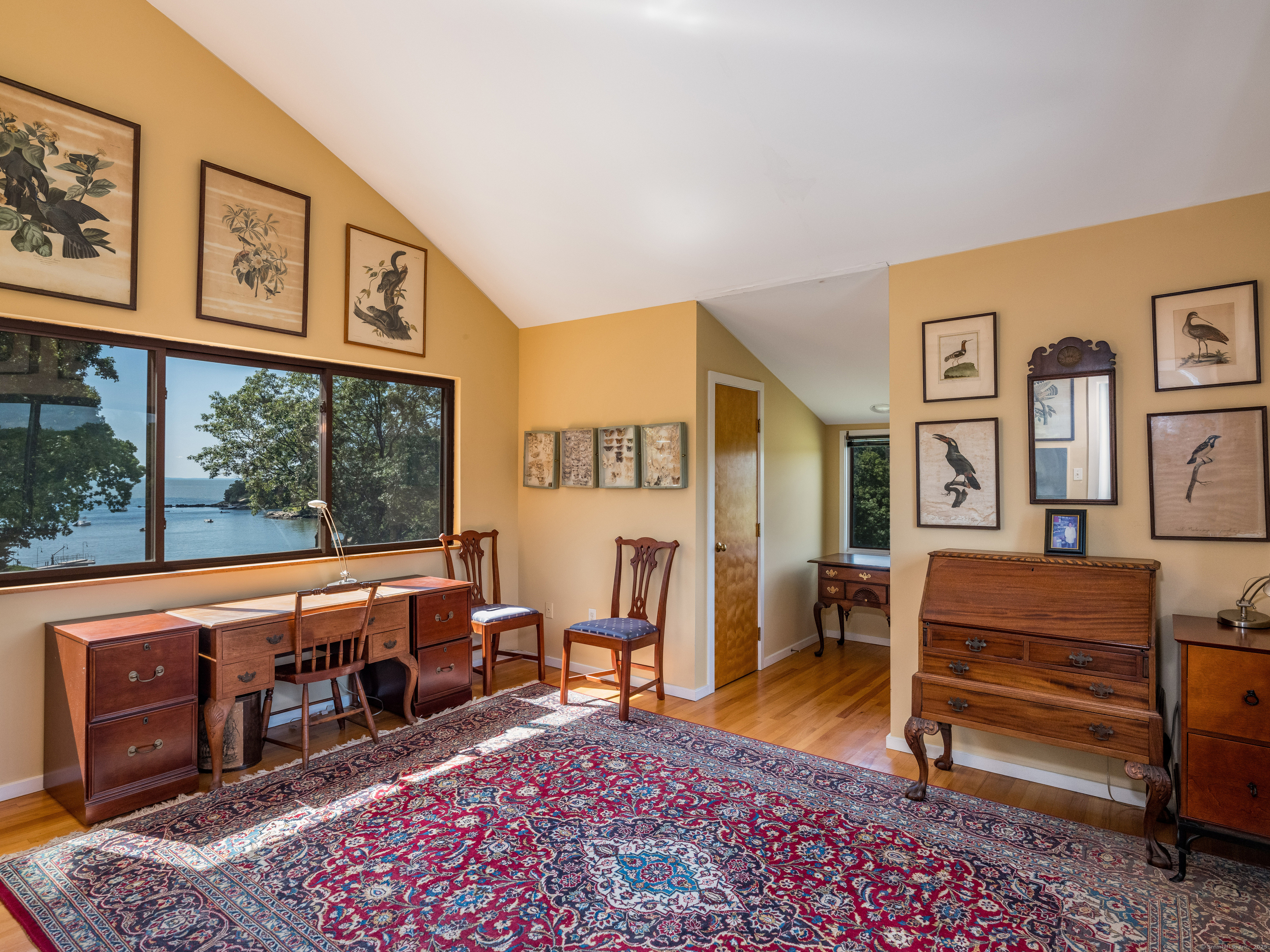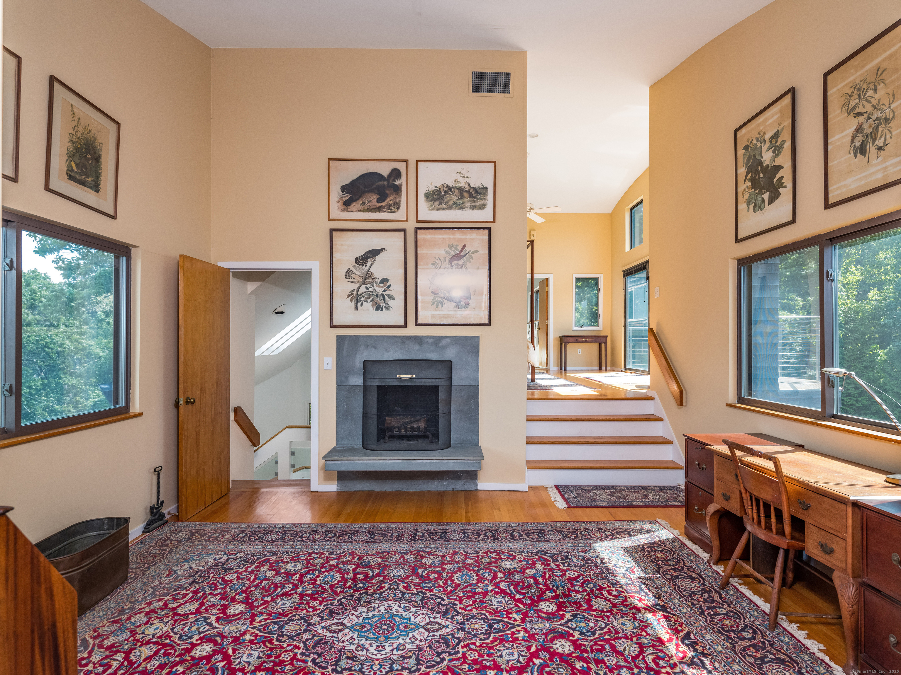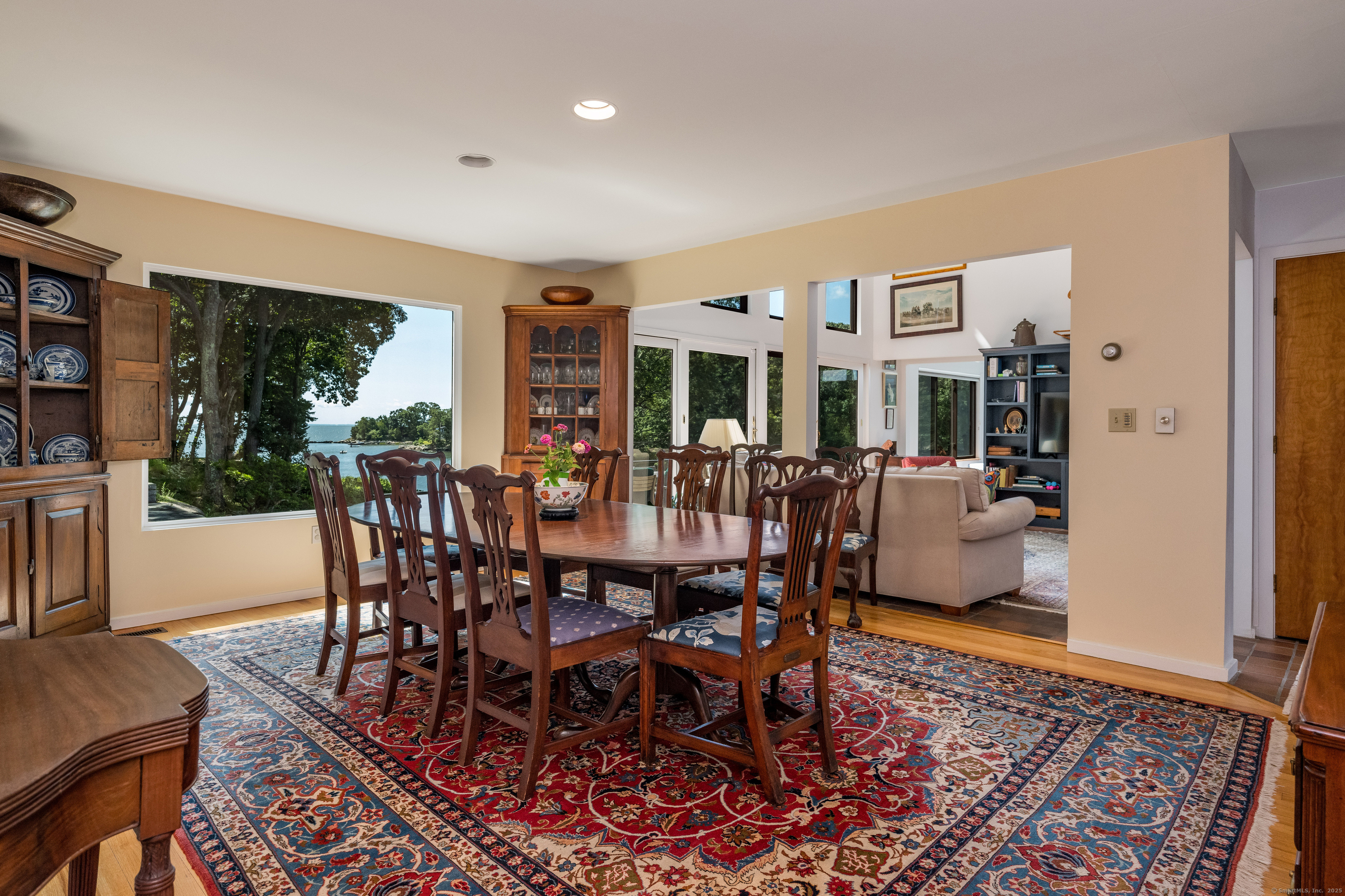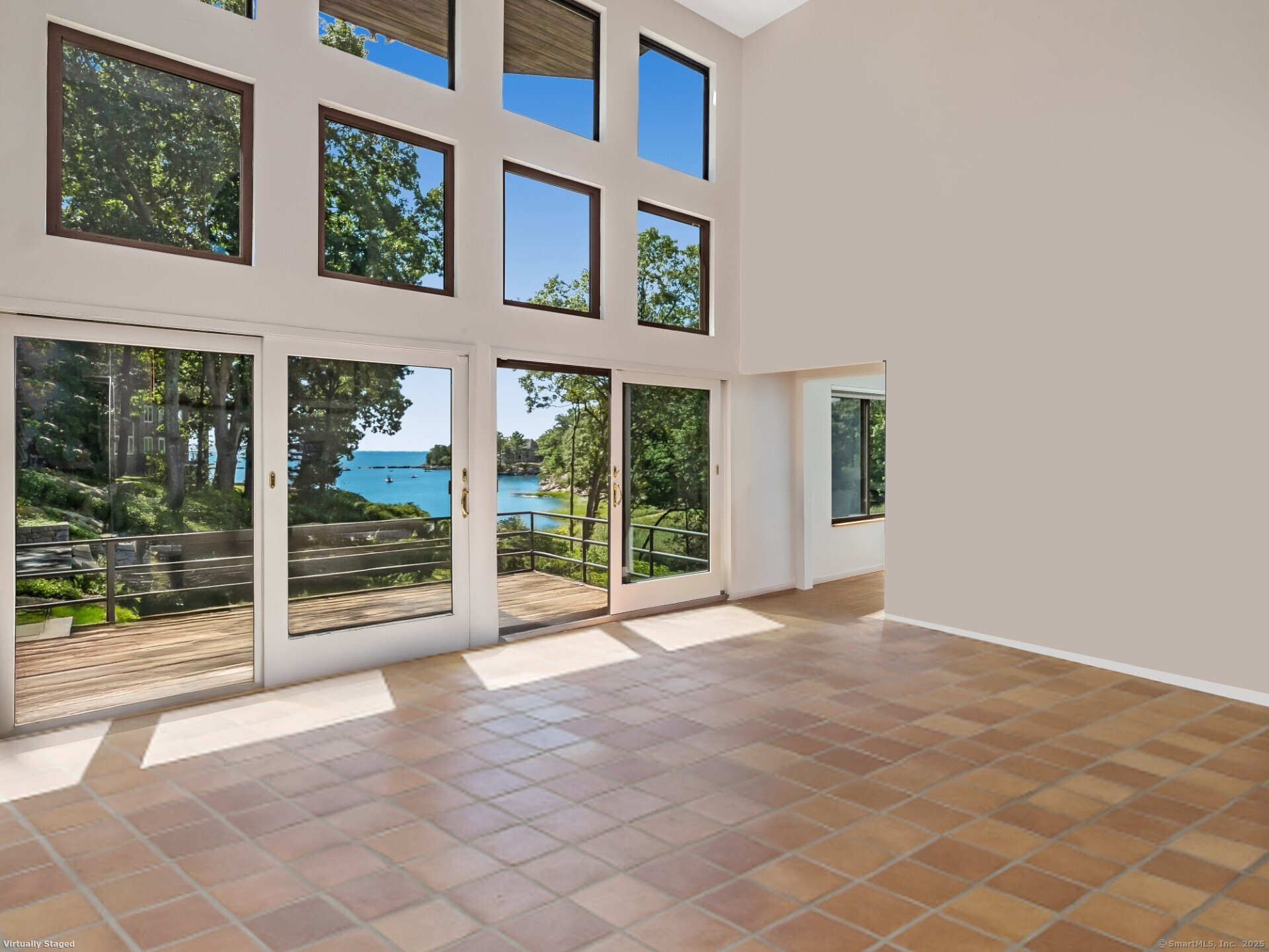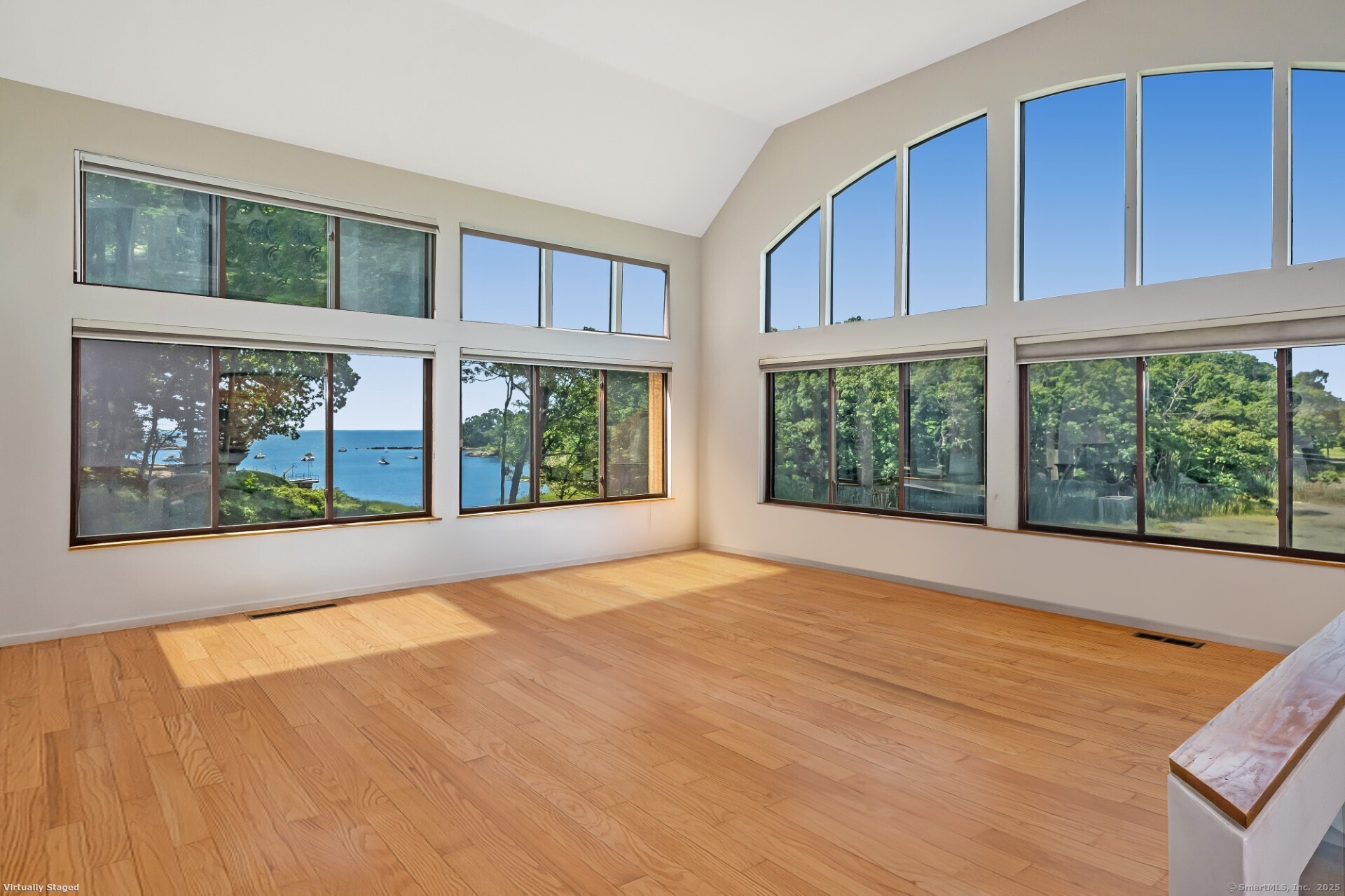 Guilford ~ Old Quarry Area ~ Waterview Contemporary ~ one of the most unique homes on the entire Eastern seaboard. Set on 3.39 Acres. Designed to capture spectacular southerly views over Little Harbor as well as Long Island Sound. With its walls of glass, high ceilings & numerous Transom windows this Unique Designed Home allows for natural views to flow easily through nearly every living area. The Main Level Features Dramatic Entertaining area including a spacious Renovated Chefs Kitchen with Wolf & Subzero Appliances, Granite counters & Center Island with Breakfast Bar. A Generous Great Room featuring wood burning FP, Curved 20ft ceiling, Family rm also with 20 ft Ceiling & Sliders to Large Deck, great for entertaining and evening dinners. Two Bedrooms overlooking Pool Area, plus full bath & powder rm complete this Floor. The upper level offers a Spectacular Primary Bedroom Suite w/deck for enjoying morning sunrises and evening sunsets, featuring a domed ceiling. Sitting Area/office w/FP & Sliders to Deck. Two additional bedrooms with Waterview's & bath. The Lower Level Offers a Guest bedroom w/ Wood Burning FP w/Sliders to Deck, Entertainment room leading to the pool area. Additional features include access to Little Harbor, Koi Pond, whole house generator, 2 car detached garage & circular driveway. Enjoy some of the best Boating, Kayaking & Hiking trails on the CT Shoreline. Convenient to Town, Yale and Train.