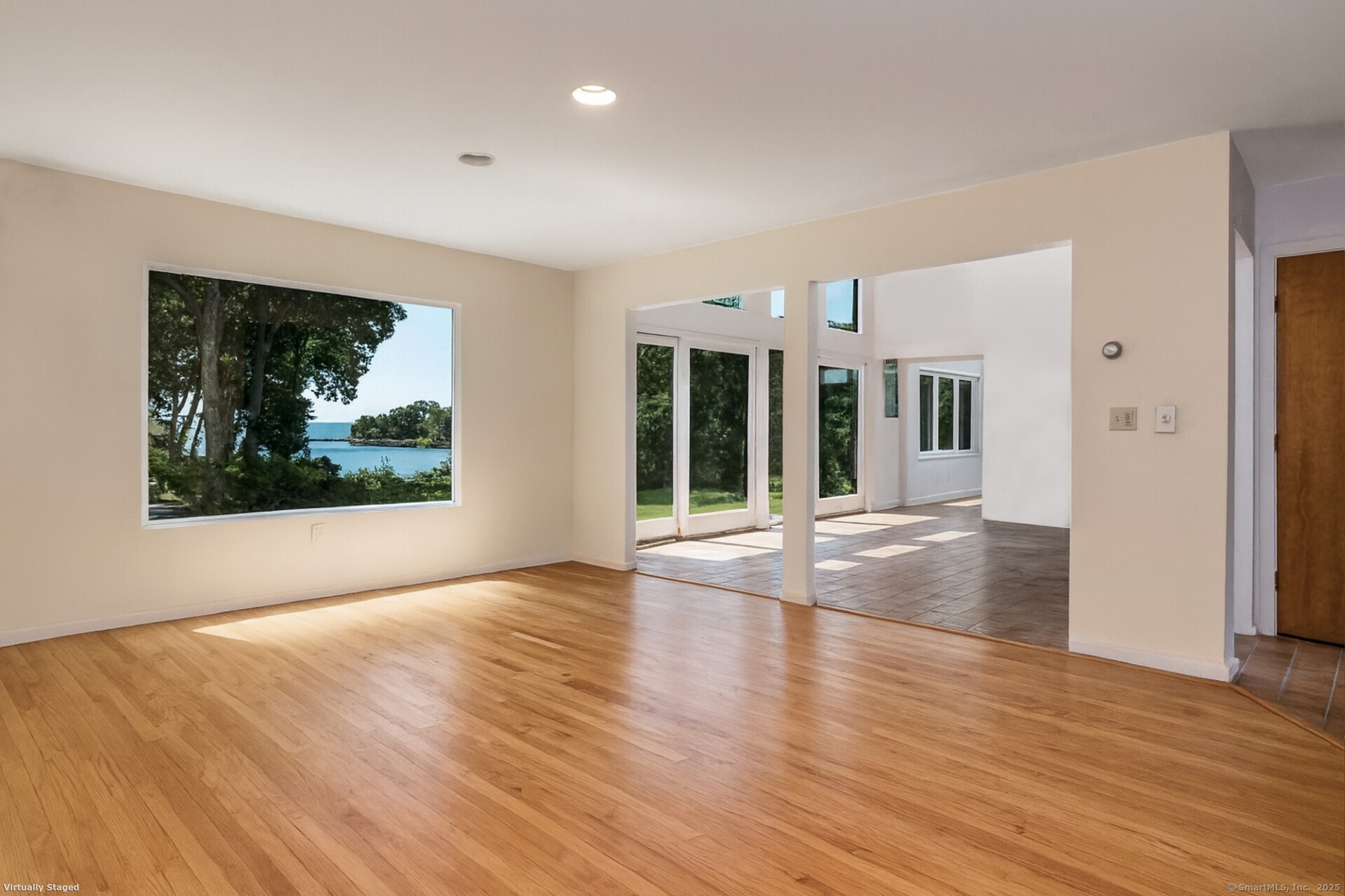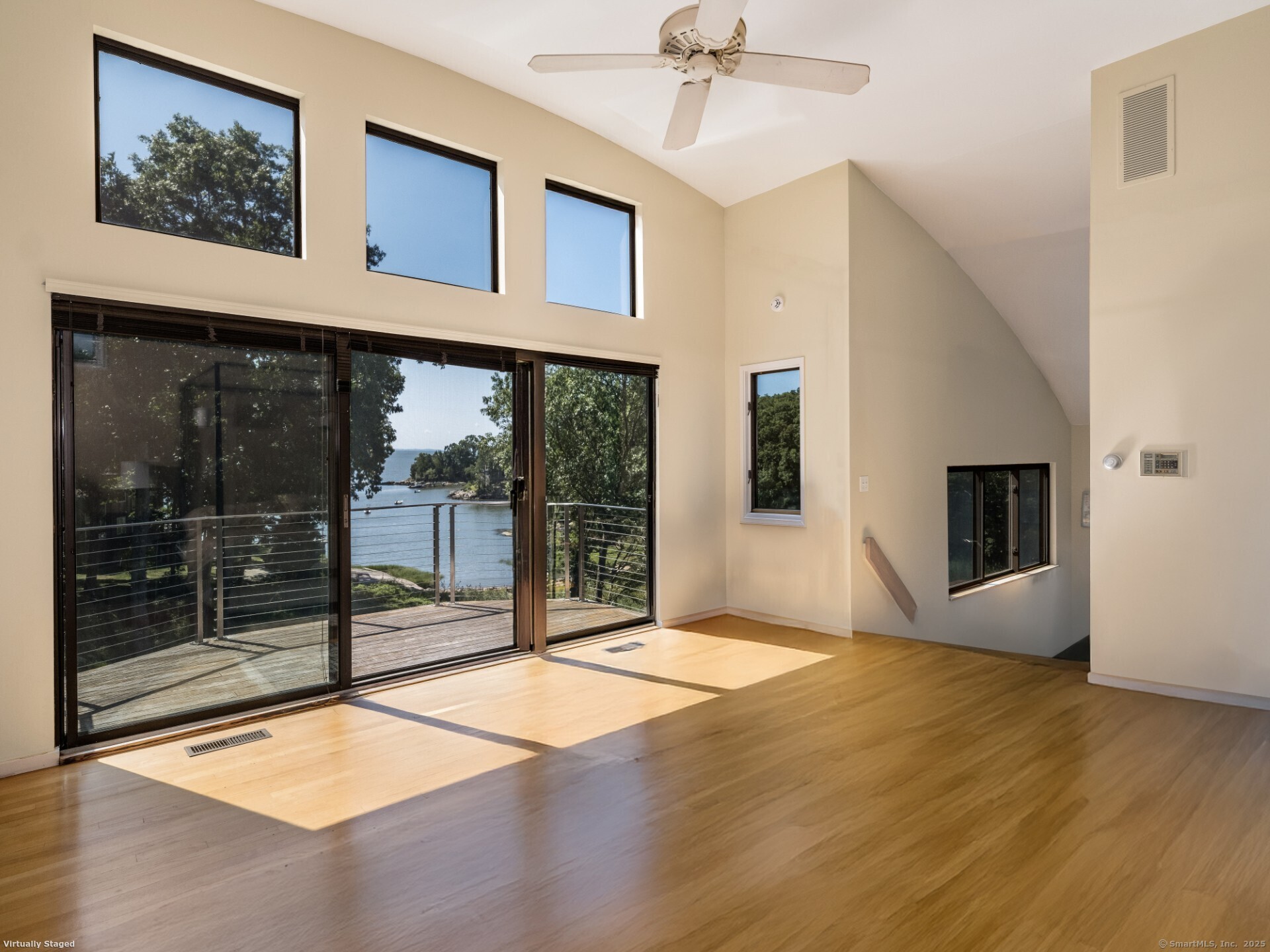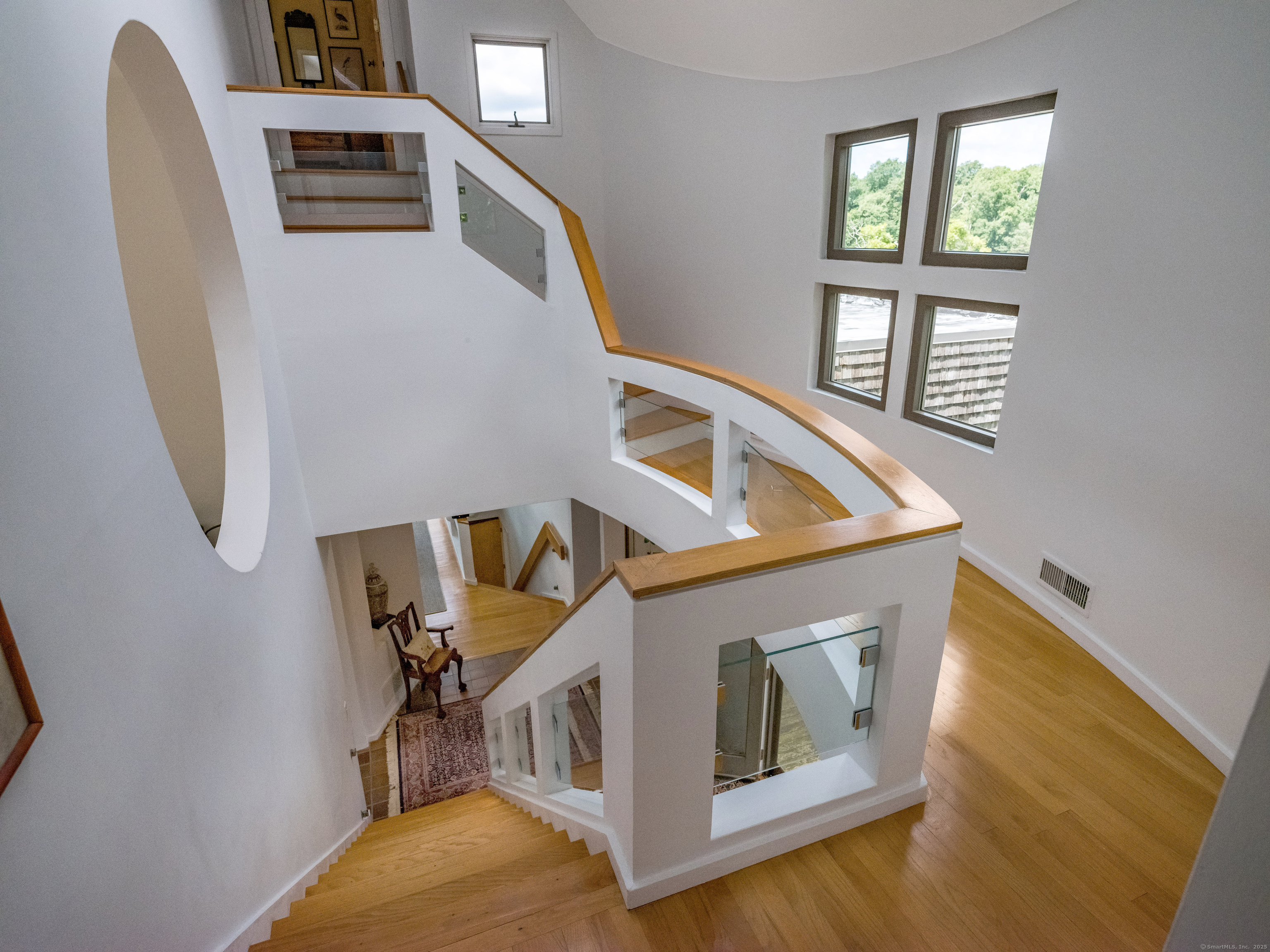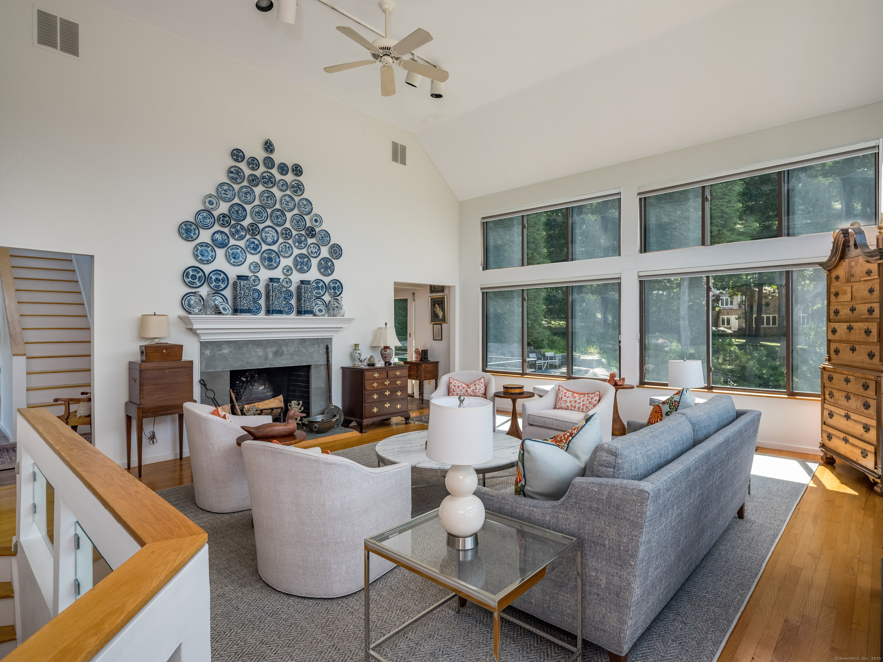 Guilford ~ Old Quarry Area ~ Waterview Contemporary ~ one of the most unique homes on the entire Eastern seaboard. Set on 3.39 Acres. Designed to capture spectacular southerly views over Little Harbor as well as Long Island Sound. With its walls of glass, high ceilings & numerous Transom windows this Unique Designed Home allows for natural views to flow easily through nearly every living area. The Main Level Features Dramatic Entertaining area including a spacious Renovated Chefs Kitchen with Wolf & Subzero Appliances, Granite counters & Center Island with Breakfast Bar. A Generous Great Room featuring wood burning FP, Curved 20ft ceiling, Family rm also with 20 ft Ceiling & Sliders to Large Deck, great for entertaining and evening dinners. Two Bedrooms overlooking Pool Area, plus full bath & powder rm complete this Floor. The upper level offers a Spectacular Primary Bedroom Suite w/deck for enjoying morning sunrises and evening sunsets, featuring a domed ceiling. Sitting Area/office w/FP & Sliders to Deck. Two additional bedrooms with Waterview's & bath. The Lower Level Offers a Guest bedroom w/ Wood Burning FP w/Sliders to Deck, Entertainment room leading to the pool area. Additional features include access to Little Harbor, Koi Pond, whole house generator, 2 car detached garage & circular driveway. Enjoy some of the best Boating, Kayaking & Hiking trails on the CT Shoreline. Convenient to Town, Yale and Train.